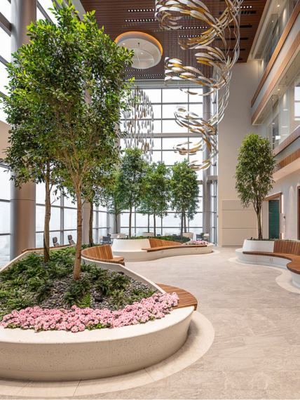 Every inch of the facility was designed with our patients’ needs in mind. For example, on most visits you can settle into one of our care pods—exam and consultation spaces where specialists come to you—instead of traveling to multiple offices and treatment locations.